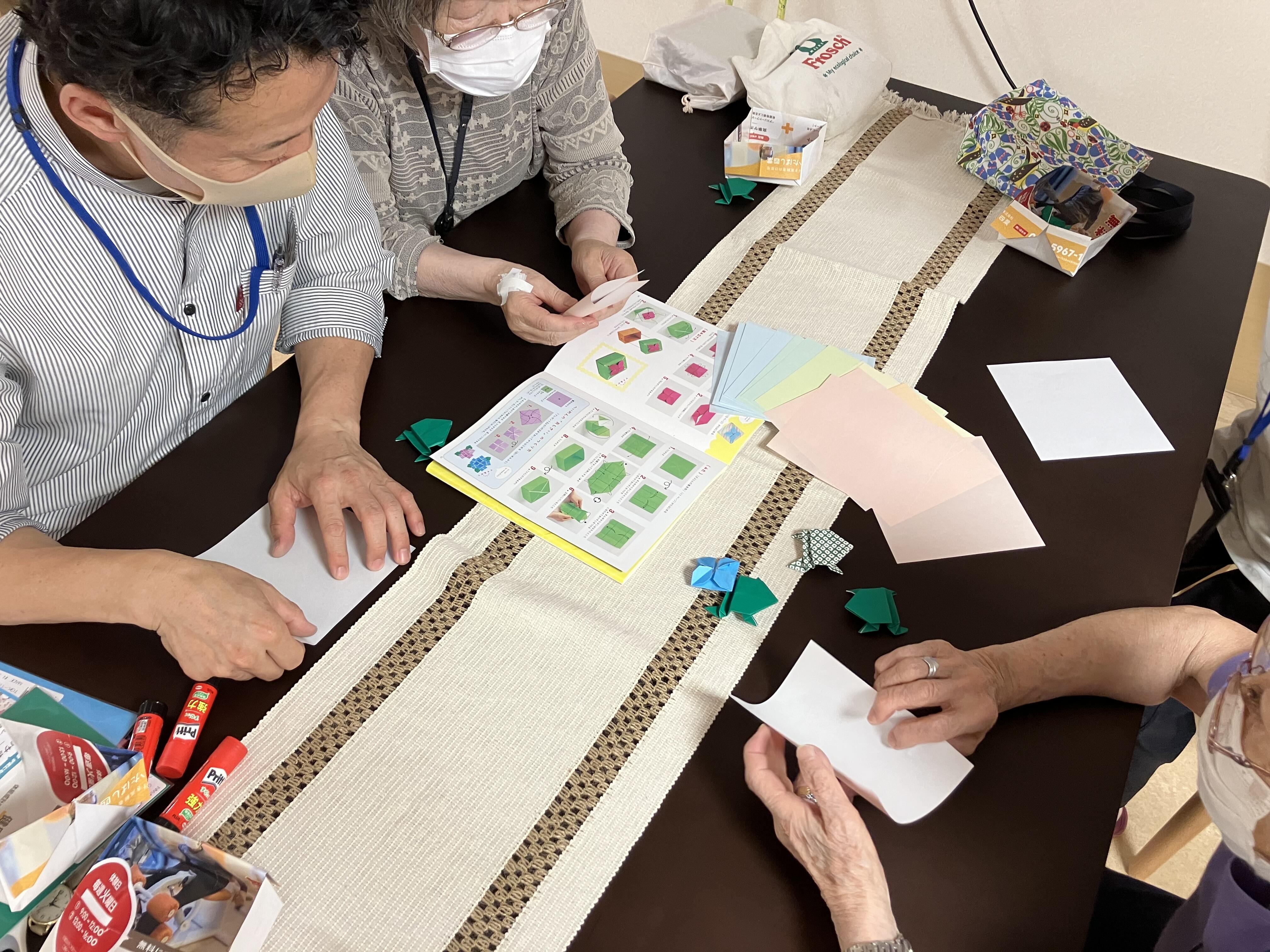 「山折り?谷折り?」「こうじゃないかしら?」と