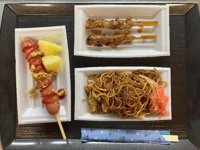 焼きそばにフランクフルト・じゃがバター・焼き鳥