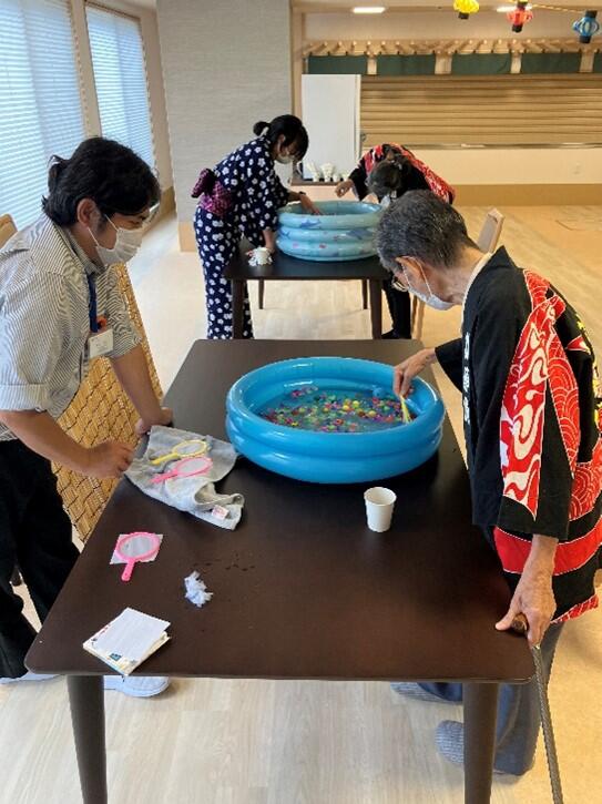 金魚すくいやヨーヨー釣り・釣りゲーム。最後の〆はかき氷!