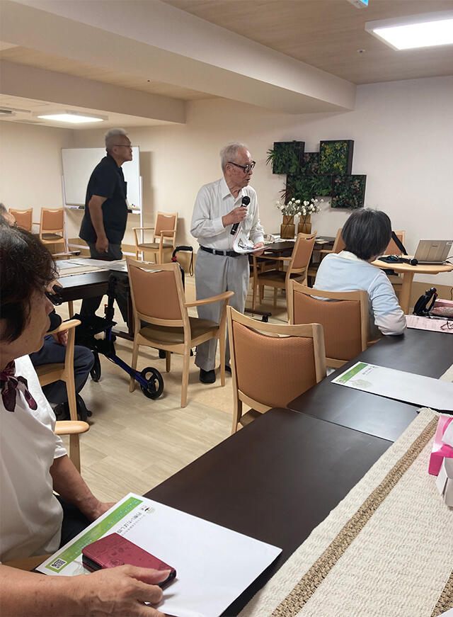 はじめに、ご入居者のT様より講師紹介のご挨拶をいただきました。