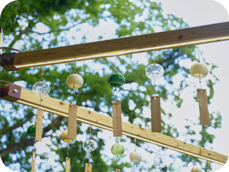 坪庭、七福神、屋根瓦をしつらえた日本伝統の趣きを感じる玄関を入ると、木材をふんだんに使用した、明るく温かみのあるエントランスホールが雰囲気がお客様をお迎えします。