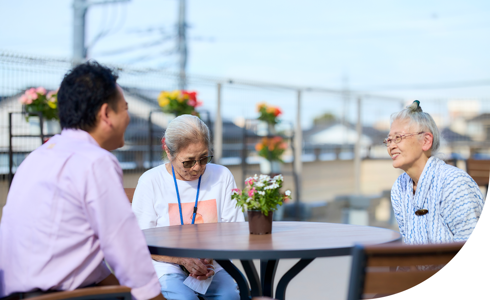 季節に合わせた花々も愉しめる、ご入居者様が集まる円樹の人気スポットです。