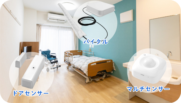 「ライブコネクト」の各種センサーで、離床・ドア開閉・トイレ通知・バイタルなど