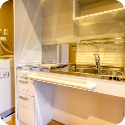 居室にはキッチンが備えられており、好きなものを好きなときに調理して食べることができます。