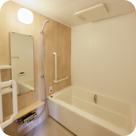 好きな時間にゆったりと入浴ができる、特に安全に配慮したユニバーサルデザインの浴室です。