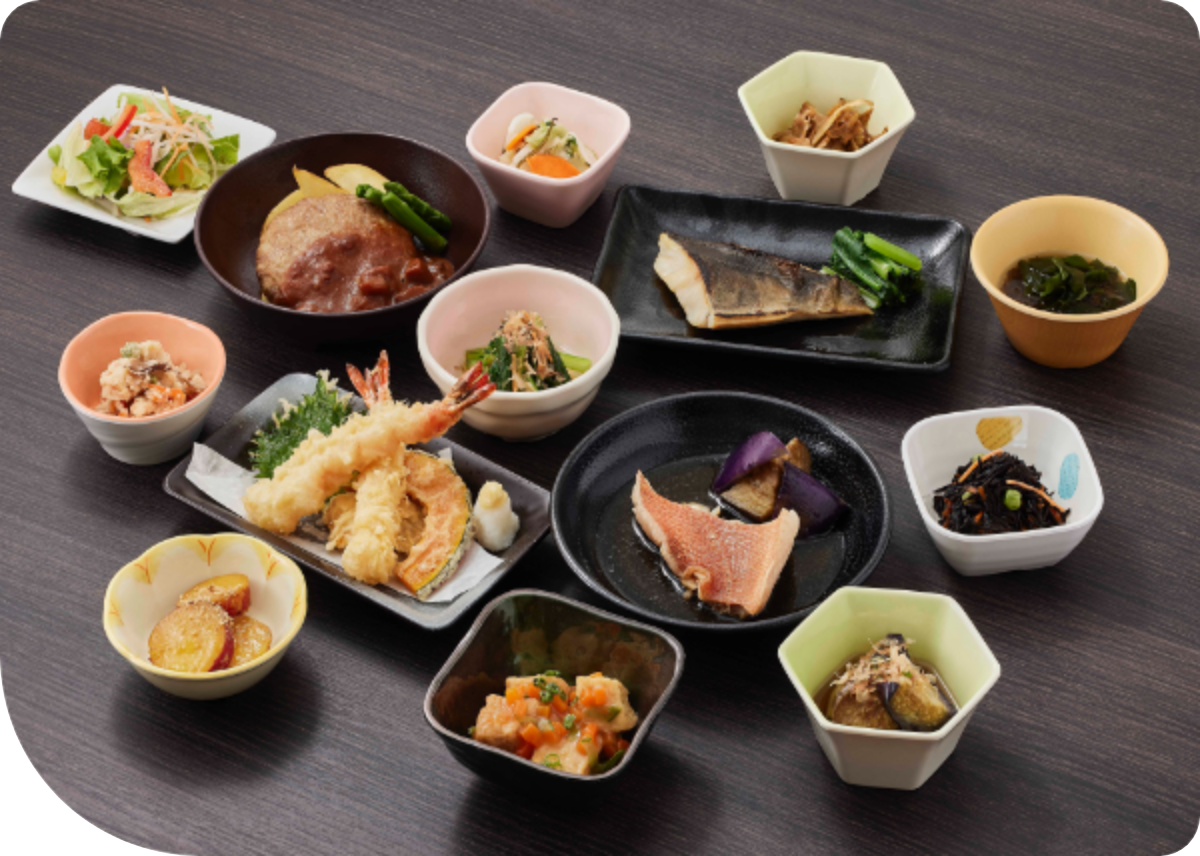 朝・昼・夕の3食だけでなく、ご入居者様のニーズに合わせてアラカルトもご用意。住宅でご提供する食事にこだわっています。