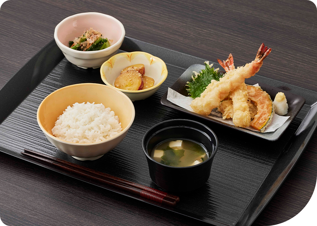 円樹では住宅内で調理されたお食事を毎食提供しております。新鮮な食材を使った出来立ての料理は、バランスの取れた健康的なお食事をご提供いたします。